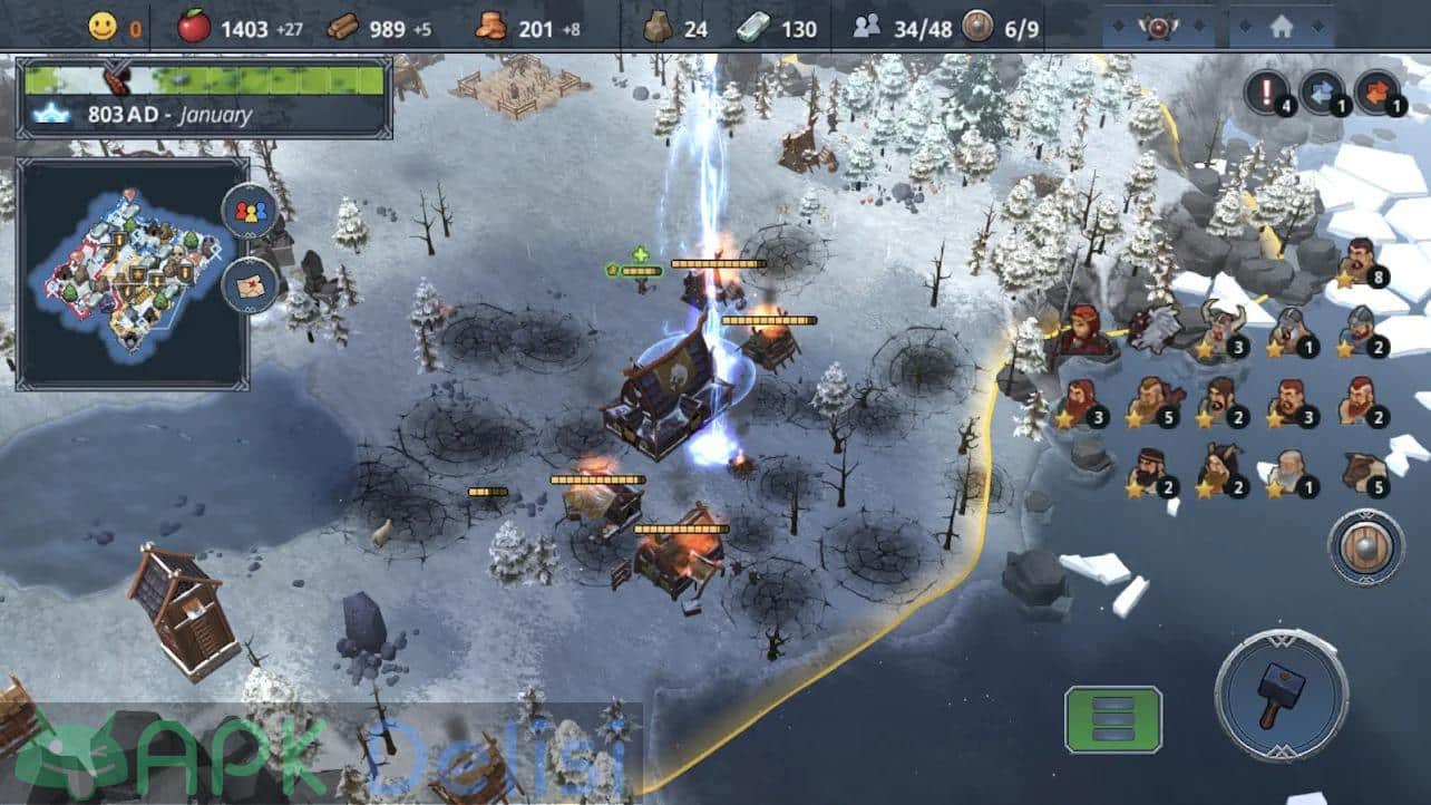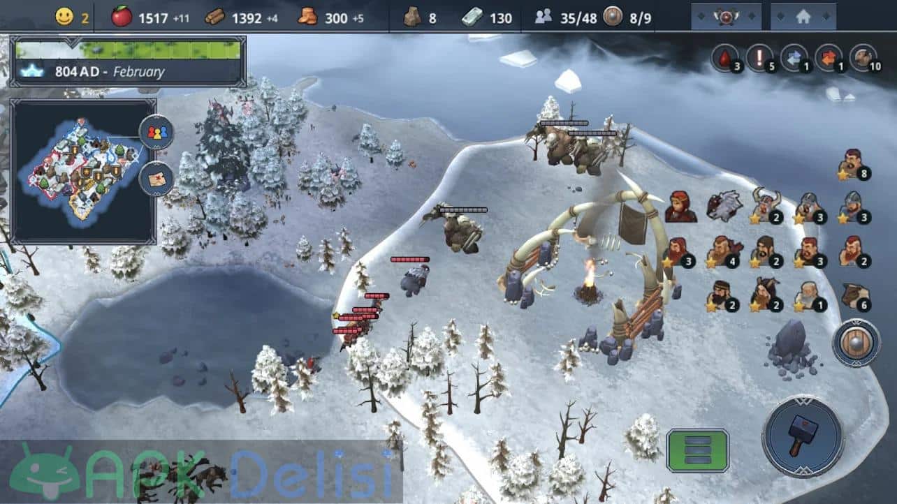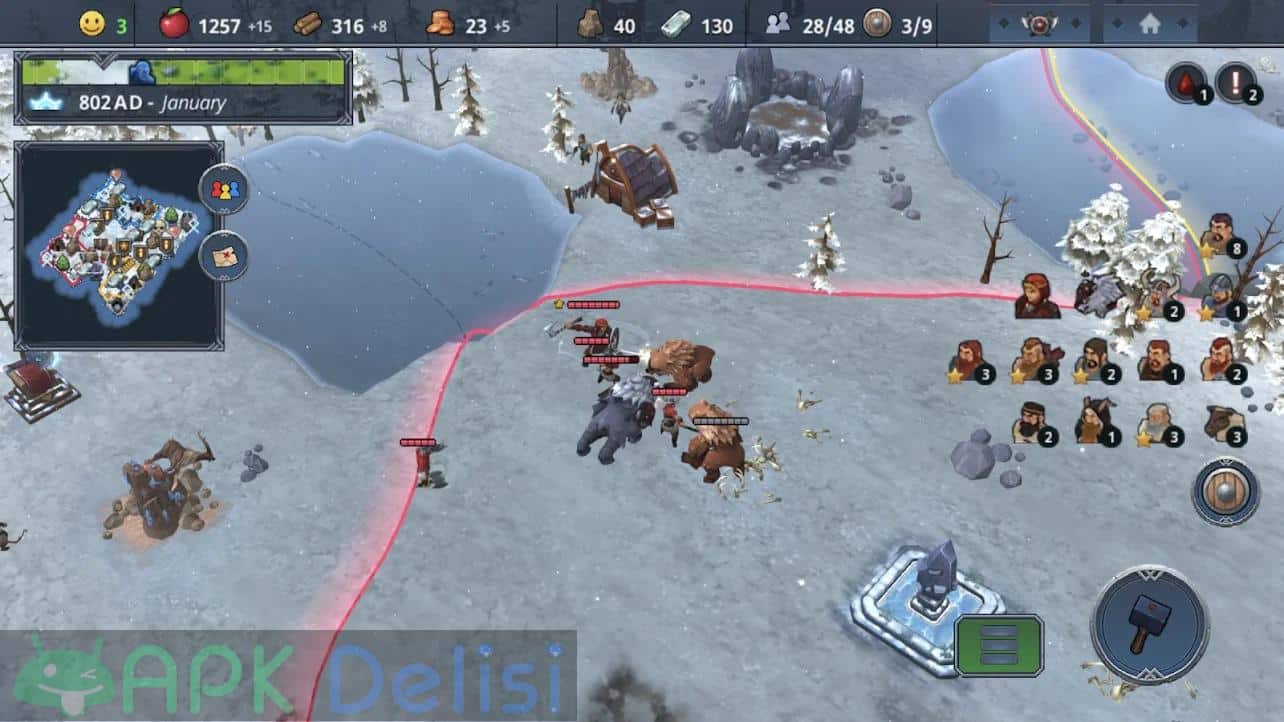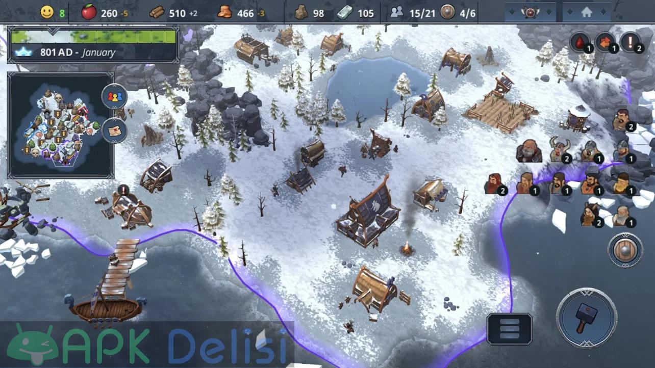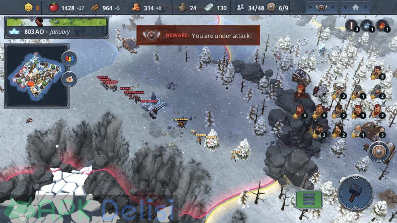 Northgard v1.7.5 FULL APK, strateji, savaş, İskandinav mitolojisini ve yönetim türündeki oyunları seviyorsanız denemeniz gerektiğini düşündüğüm yapımcılığını Playdigious firmasının üstlendiği Android platformuna yeni giriş yapan oyunlardan birisidir. Oyundaki amacınız kontrolünü sağladığınız Vikingler ile İskandinav topraklarında ilerlemek, fetihler yapmak ve kendi krallığınızı kurmaktır. Northgard içinde yaşanan genel kısıtlamalardan dolayı MOD APK yani tam sürüm ve DLC paketlerinin kilidi açık şekilde sunuyorum bu sayede oyunun keyfini sonuna kadar çıkarabilir, aralıksız mücadelenin keyfini çıkarabilirsiniz. STEAM üzerinden mobil cihazlara geçiş yapan oyunlardan birisidir. Play Store’da 24.99TL’dir. TÜRKÇE dil desteği mevcuttur. Düşmanlarınız, yapılması gereken inşaatlar, askerleriniz, yaratıklar ve dahası sizleri bekliyor.