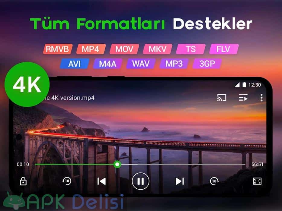 ● MKV, MP4, M4V, AVI, MOV, 3GP, FLV, WMV, RMVB, TS v.b. dahil TÜM video formatlarını destekler.