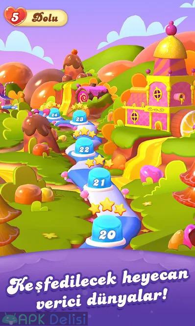 Aynı renkleri denk getirme oyunlarını seviyorsanız kesinlikle denemeniz gerektiğini düşündüğüm yapımcılığını ünlü KING stüdyosunun üstlendiği Android platformuna yeni giriş yapan mükemmel bir oyundur. Oyundaki amacınız parmak hareketlerinizle 3 tane aynı şekeri yan-yana veya üst-üste denk getirerek patlamak ve görevleri tamamlamaktır. Candy Crush Friends Saga içinde ilerledikçe yaşanan genel zorluklardan dolayı MOD APK yani +100 hamle hileli, sınırsız can hileli olarak sunuyorum bu sayede oyunun keyfini sonuna kadar çıkarabilir, tüm bölümleri rahatça bitirebilirsiniz. Renkli oyun yapısı, zorlu görevler, onlarca bölüm ve dahası sizleri bekliyor.