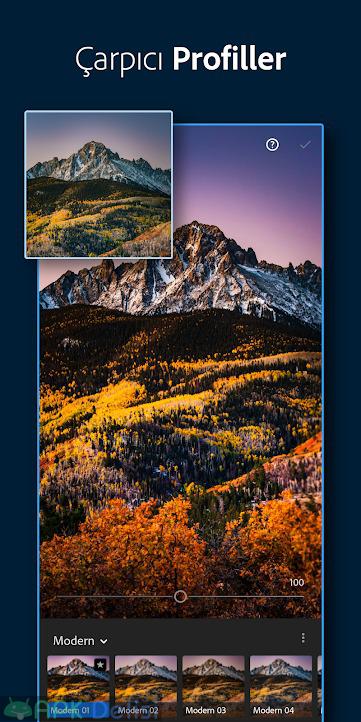 • TOPLULUK: Kişiselleştirilmiş içerik, ücretsiz hazır ayarlar ve sevdiğiniz sanatçıları takip etme özellikleriyle Lightroom’daki diğer kullanıcılardan ilham alın.