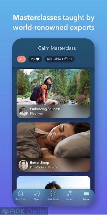 Calm v6.48 PREMİUM MOD APK KİLİTLER AÇIK, sağlık, meditasyon, uyku hikayeleri ve müzik dinlemek isteyen kullanıcılarımıza özel tavsiye ettiğim yapımcılığını Calm firmasının üstlendiği android platformun popüler sağlık uygulamasından birisidir. Uygulamanın içeriğine bakacak olursak kötü geçirdiğiniz günlerde uygulamadan meditasyon videoları, uyumak için hikayeler ve ruh dinlendirici müzikler ile sizleri güne iyi başlamanızı sağlıyor. Calm v6.48 PREMİUM MOD APK KİLİTLER AÇIK ile uygulama içerisinde yaşanan genel sıkıntılardan dolayı siz değerli kullanıcılarımıza özel premium abonelikler satın alınmış bir şekilde sunuyorum bu sayede uygulamadan daha fazla keyif alabilir, tüm ücretli özelliklerin hepsini kullanabilirsiniz. Onlarca meditasyon becerileri, müzik ve doğa sesleri , yetişkinler için uyku hikayeleri ve daha birçok şey siz değerli android kullanıcılarını bekliyor. Şimdiden keyifli günler dilerim.