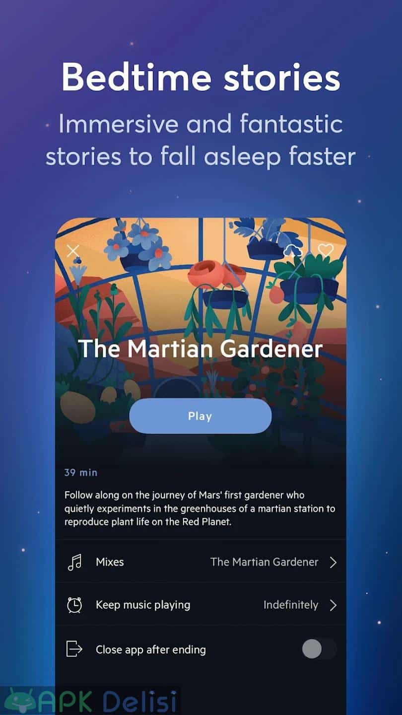 BetterSleep v23.15 MOD APK PREMİUM KİLİTLER AÇIK, geceleri uyuyamayan ve daha iyi hissetmek isteyen kullanıcılarımız için tavsiye ettiğim yapımcılığını Ipnos Software firmasının üstlendiği android platformun popüler uyumanıza yardımcı olan uygulamalarından birisidir. Uygulamanın içeriğine bakacak olursak uyumanıza kolayca sağlayan bunu yaparken sizin seçtiğiniz kategorilere göre müzikler açılıp tıpkı bir meditasyon gibi sağlıklı bir uykuya sahip olabilirsiniz. BetterSleep v23.15 MOD APK PREMİUM KİLİTLER AÇIK ile uygulamada yaşanan genel sıkıntılardan dolayı siz değerli kullanıcılarımıza özel tüm premium kilitler açık hileli bir şekilde sunuyorum bu sayede uygulamadan daha fazla verim alabilir, premium hikaye ve müzikleri dinleyip mışıl mışıl yatabilirsiniz. Sağlıklı uyku, rüya gibi müzikler, bir haftada daha iyi bir uyku ve daha birçok şey siz değerli android kullanıcılarını bekliyor. Şimdiden keyifli günler dilerim.