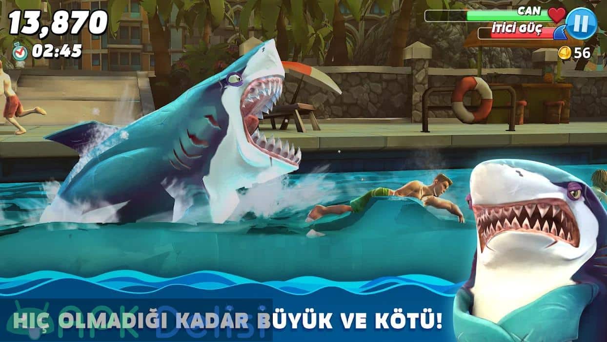 Hungry Shark World v5.3.0 MOD APK غش المال, هي إحدى ألعاب إدارة أسماك القرش الشهيرة على منصة ألعاب أندرويد التي تنتجها شركة Ubisoft Entertainment، والتي أوصي بها لأولئك الذين يحبون الألعاب المتعلقة بالكلاب والمغامرات. هدفك الرئيسي في اللعبة هو اصطياد الأسماك وغيرها من الأسماك التي تواجهها باستخدام سمكة القرش الكبيرة التي تتحكم فيها، والذهاب إلى مناطق مختلفة ومحاولة إكمال مهامك. مع Hungry Shark World v5.3.0 MOD APK MONEY CHEAT، نظرًا للصعوبات المالية والعامة التي واجهتها اللعبة، أقدم لك، لمستخدمينا الكرام، عمليات احتيال غير محدودة للأموال، واحتيال غير محدود للماس، حتى تتمكن من الاستمتاع باللعبة أكثر والصيد بشكل أفضل من خلال شراء الأسماك بالميزات المختلفة التي تريدها. العشرات من أسماك القرش والأسماك وغيرها في انتظار اصطيادها والفريسة التي تهرب منك وغيرها الكثير في انتظارك، أيها مستخدمي ألعاب Android الكرام. وجدت في اللعبة دعم اللغة التركية وسوف تساعدك على فهم كل شيء بسهولة. أتمنى لكم ألعاب ممتعة مقدما.