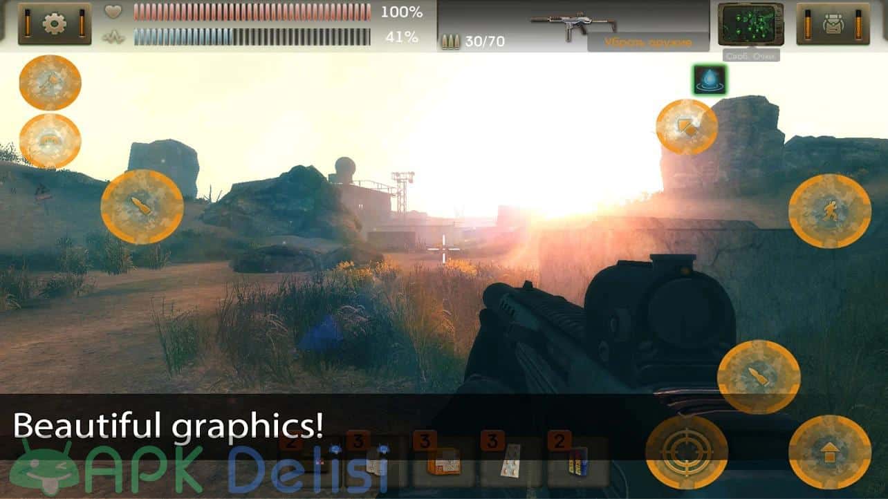 Die Sonne: Ursprung Im Spiel ist das Jahr 2050 und aufgrund eines Fehlers der Menschheit, Staubstürme, die die Erde bedecken, zerstören unsere Sonne. geschlossen. Da die Radioaktivität auf einem hohen Niveau war, begann die Menschheit, ob jung oder alt, zusammenzubrechen. Dann Ein tapferer Held namens Raven wurde ein furchtloser Krieger, um die Welt zu reparieren und der Retter zukünftiger Generationen zu werden. Um die Bösewichte zu besiegen, benötigen Sie Grundbedürfnisse wie Nahrung und Wasser sowie Gegenstände wie Waffen, Kugeln und Gesundheitssets. Verschiedene Waffen – Ausrüstung, gefährliche Monster, Gebiete, die Sie erkunden müssen und mehr warten auf Sie.