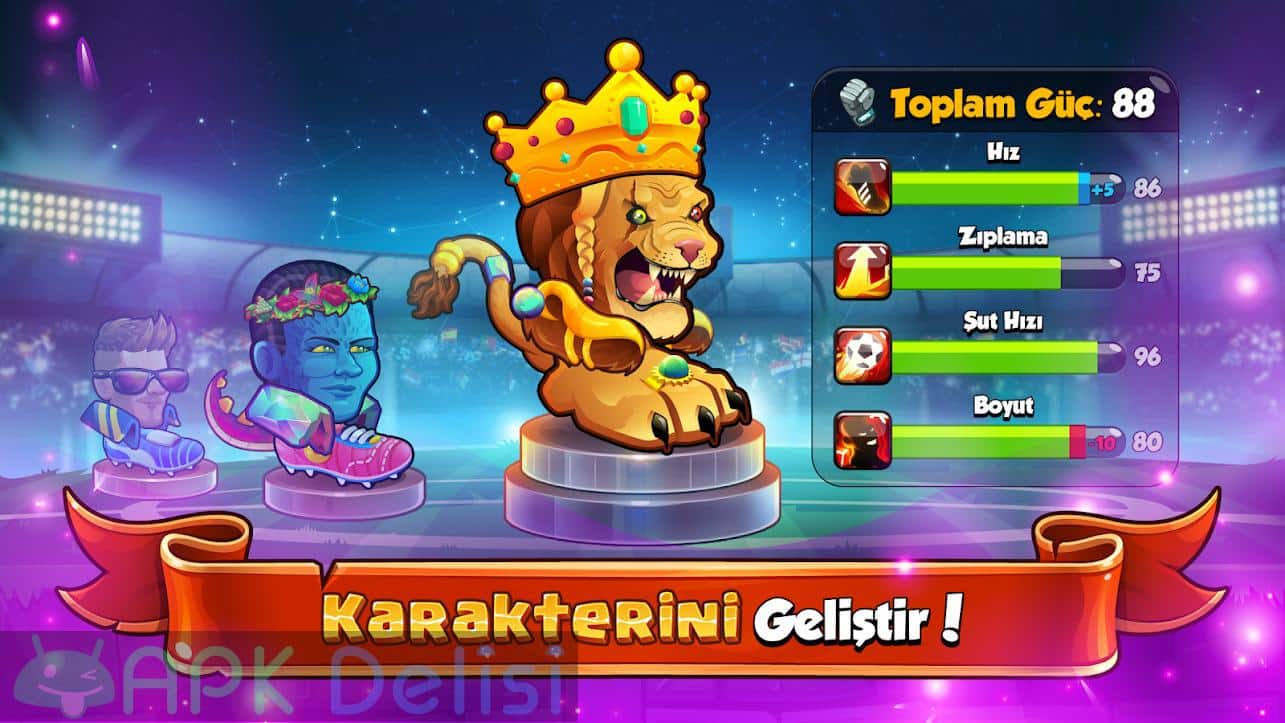 Dutzende verschiedener Charakter- und Zubehöroptionen warten darauf, dass Sie Ihren Traum-Footballspieler erschaffen! Jeder Charakter in Head Ball 2 hat unterschiedliche Eigenschaften. Sie können Ihre Charaktere mit Zubehör stärken und sich mit anderen Spielern erbittert messen. Erschaffe einen stärkeren Spieler, indem du verschiedene Charaktere und Accessoires kombinierst, und besiege deine Gegner auf dem Spielfeld!
