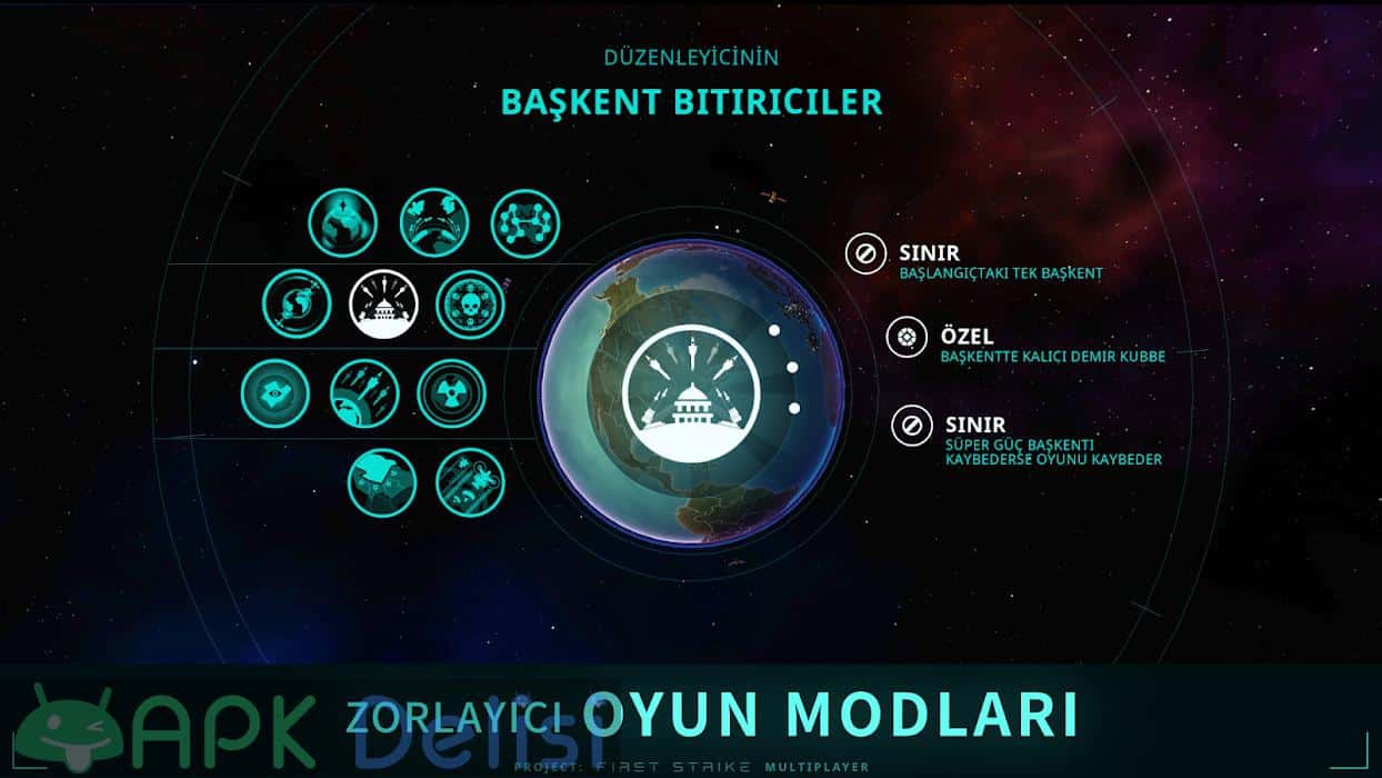 First Strike v4.1.0 MOD APK LOCKS OPEN es uno de los juegos de guerra populares de la plataforma de juegos Android, que ha recibido más de 5,000,000 de descargas en Playt Store, producido por el estudio Blindflug Studios AG, que recomiendo para los amantes de los juegos de gestión, guerra y estrategia. Tu objetivo principal en el juego es defender el país que administras contra países enemigos e intentar apoderarte de tierras. Con First Strike v4.1.0 MOD APK BLOQUEOS ABIERTOS, debido a los problemas generales experimentados en el juego, ofrezco todos los países a nuestros valiosos usuarios con trucos abiertos, todas las funciones bloqueadas con trucos abiertos, para que puedas elegir los países que quieras y elegir las armas de forma gratuita. Enemigos desafiantes, diferentes países, armas, habilidades y mucho más te esperan, valiosos usuarios de juegos de Android. Encontrado en el juego SOPORTE DEL IDIOMA TURCO Le ayudará a comprender y comprender todo fácilmente. Les deseo juegos divertidos de antemano.