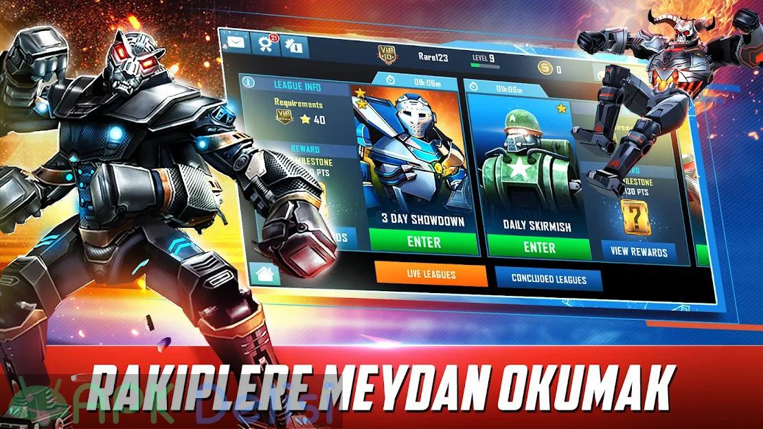 Real Steel WRB v60.60.120 MOD APK MONEY CHEAT es uno de los juegos de robots populares de la plataforma de juegos Android producido por la compañía Reliance Big Entertainment, que recomiendo a los amantes de los juegos de lucha de robots. Tu objetivo principal en el juego es luchar contra las pilas de metal que encuentras en la arena con los robots que manejas e intentas ganar. Con Real Steel WRB v60.60.120 MOD APK TRUCO DE DINERO, debido a los problemas financieros y generales experimentados en el juego, ofrezco fraude de dinero ilimitado a nuestros valiosos usuarios, para que puedan comprar los robots que deseen y disfrutar más del juego. Docenas de robots con diferentes características, oponentes desafiantes y muchos más te están esperando, valiosos usuarios de juegos de Android. Te deseo juegos divertidos de antemano.