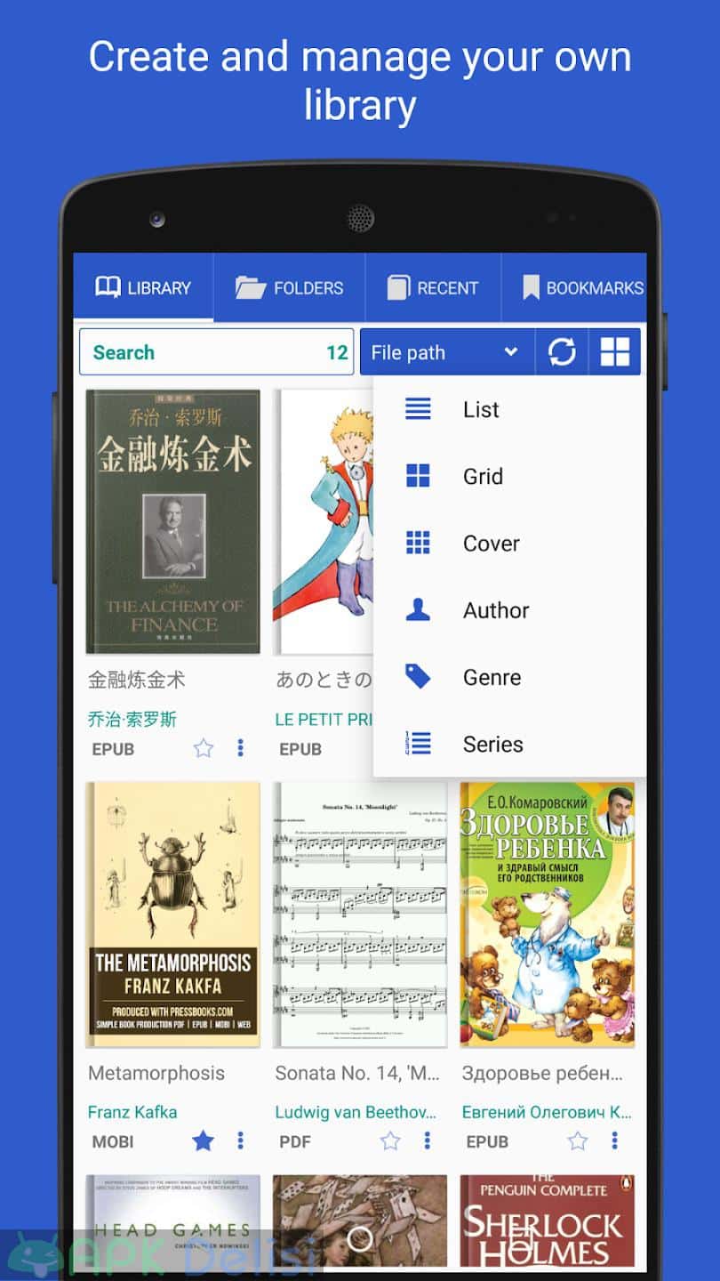 Con Librera Reader, puedes crear bibliotecas bien mantenidas de todos sus documentos especificando qué formatos incluir y qué carpetas escanear.
